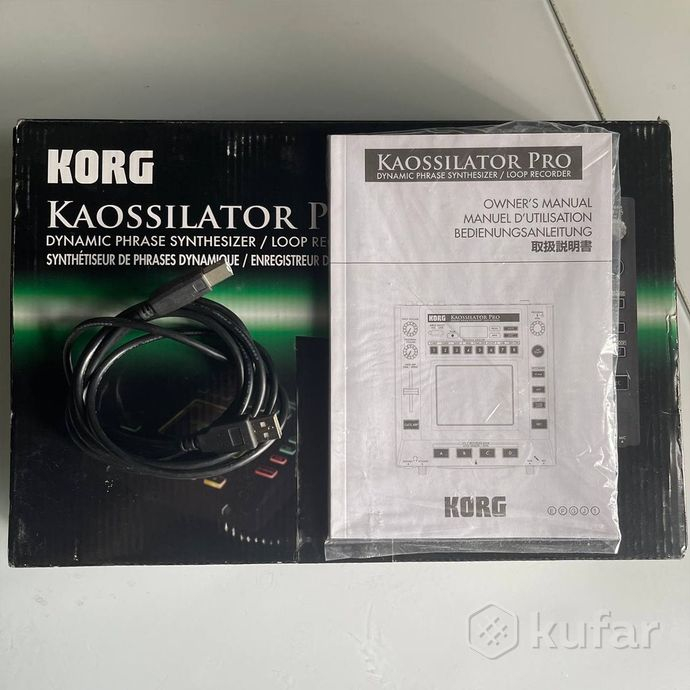 Комплект: Korg KAOSSILATOR PRO,коробка, инструкция, кабель для ПК, блок питания, Аудио кабель.